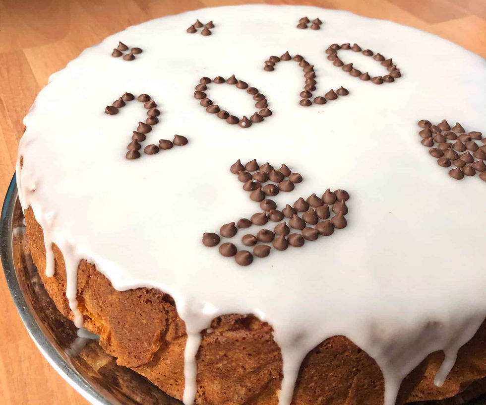 Finally, it is customary that the year number is written on top of the cake. Keep it simple and use a toothpick carve out the number in your glaze or get creative and use some chocolate drops or some M&M’s to make your year shape!